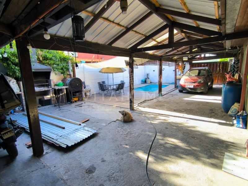 Posee un local comercial de 30 mts2, una casa de un piso de construcción sólida, un departamento interior y una piscina de concreto.
